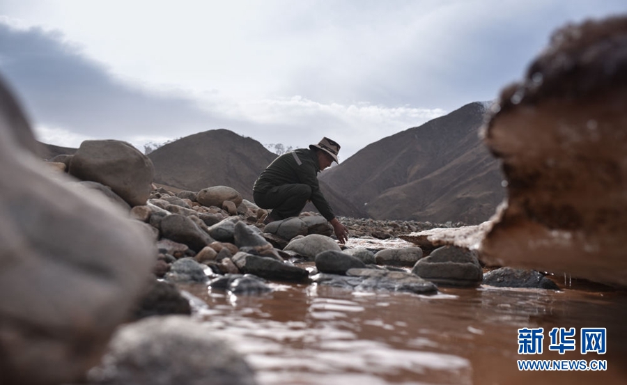 4月22日,祁連山國(guó)家公園油葫蘆管護(hù)站生態(tài)管護(hù)員普華才讓在巡護(hù)途中洗手。新華社記者 吳剛 攝
