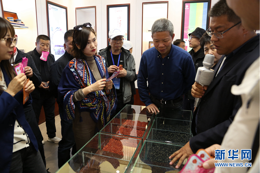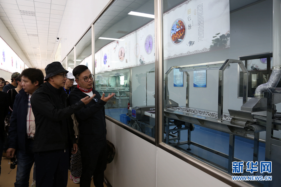 浙商們參觀黑枸杞的篩選過(guò)程。新華網(wǎng) 卡婭梅朵 攝