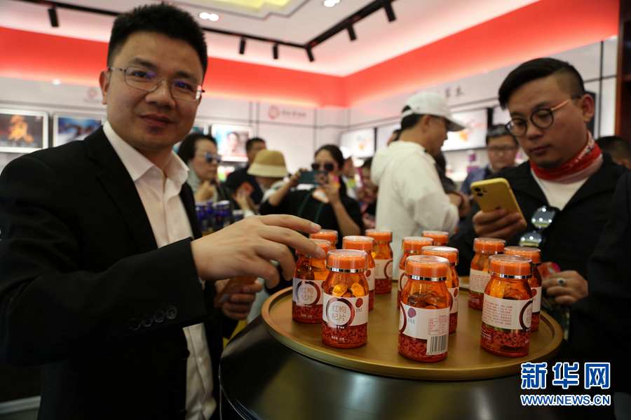 一位浙商正在查看展出的黑枸杞產(chǎn)品。新華網(wǎng) 卡婭梅朵 攝