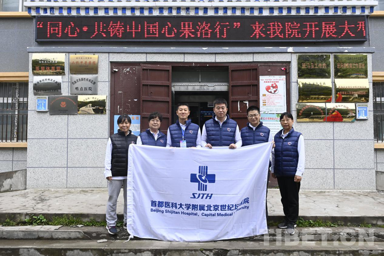 圖為首都醫(yī)科大學(xué)附屬北京世紀(jì)壇醫(yī)院醫(yī)生在班瑪縣人民醫(yī)院合影 (組委會(huì)供圖)