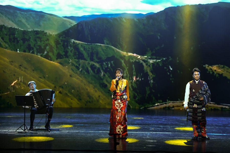 7月16日,手牽手·心連心《從黃河到長江》主題音樂會青海西寧站演出在青海大劇院精彩亮相。新華網(wǎng) 潘彬彬 攝