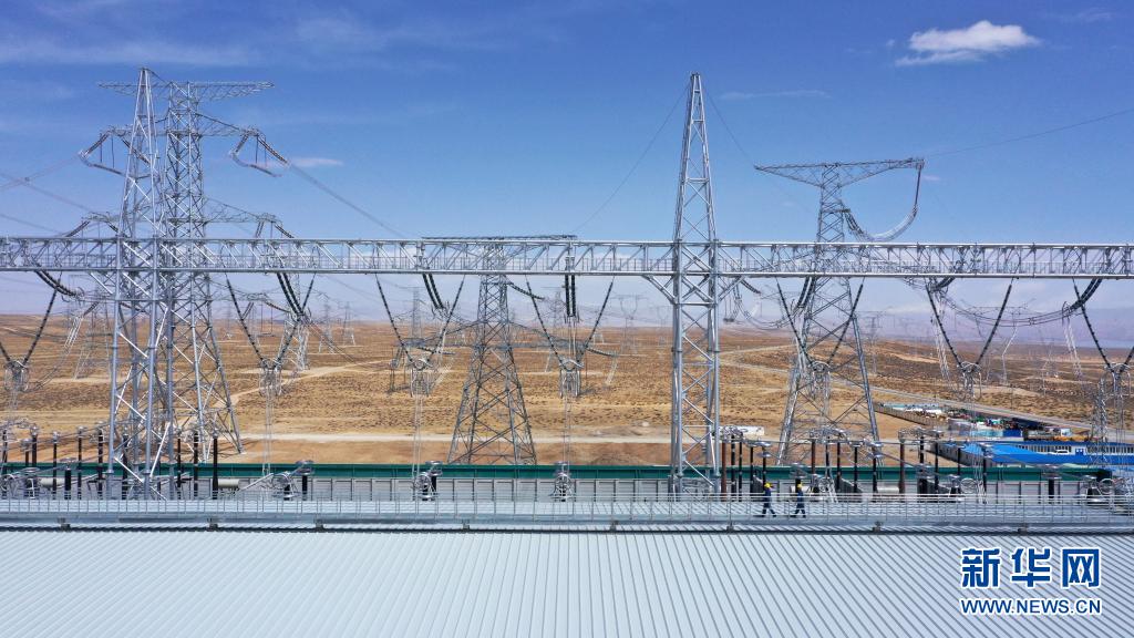 6月17日在青海省黃南藏族自治州河南蒙古族自治縣拍攝的青豫特高壓直流工程。新華社 謝莉蓉 攝