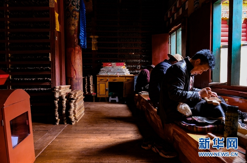7月20日,四川德格,印經(jīng)院印刷工人進(jìn)行雕版印刷。中新社記者 劉忠俊 攝
