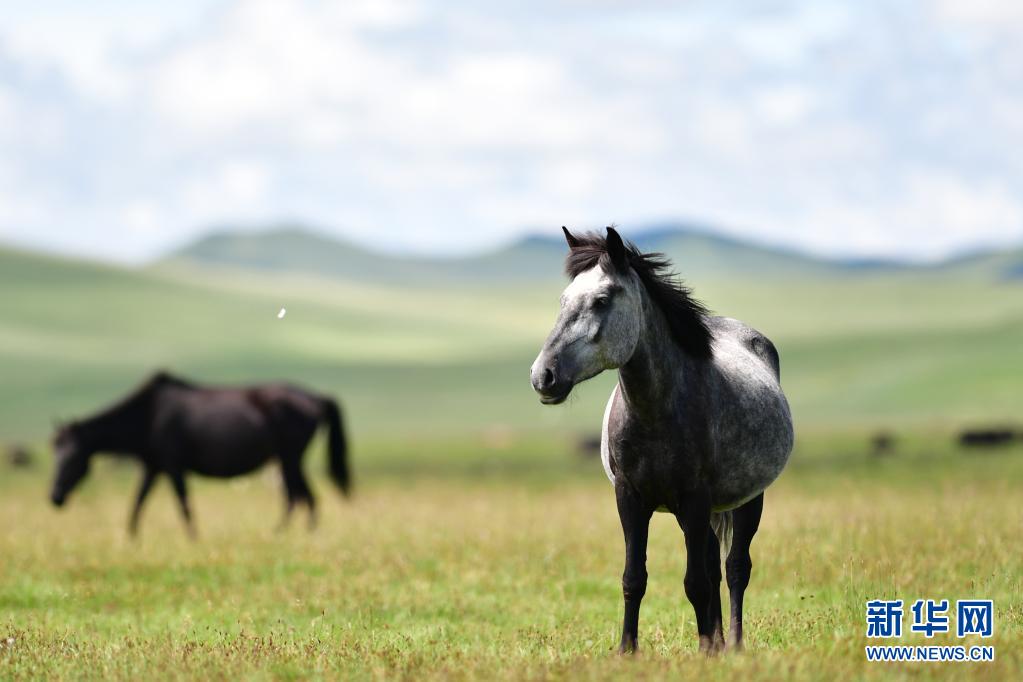 這是7月15日在甘肅瑪曲縣河曲馬場(chǎng)拍攝的河曲馬。新華社記者 陳斌 攝