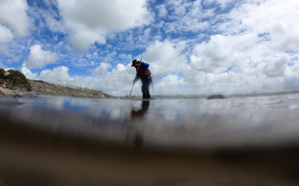 在青海省玉樹藏族自治州治多縣,長江科學院高級工程師李偉在科欠曲采集魚類樣本。新華社記者 吳剛 攝