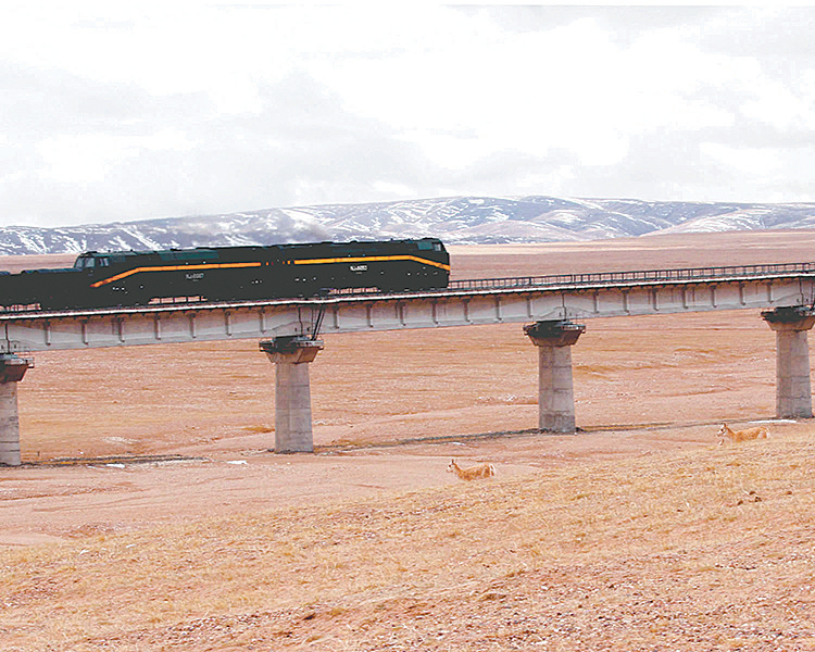 藏羚羊已習慣了火車從身邊呼嘯而過。