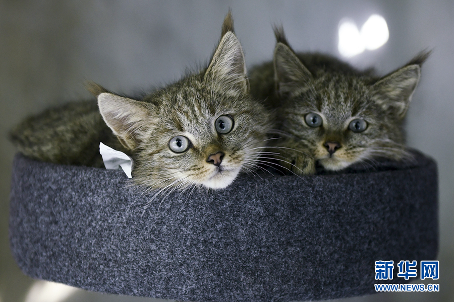 這是9月30日在西寧野生動物園拍攝的兩只人工救助的荒漠貓幼崽。新華社記者 張龍 攝