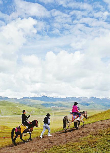 在塔公草原騎馬,是游客最為向往的事情。四川日報(bào)全媒體記者 華小峰 攝