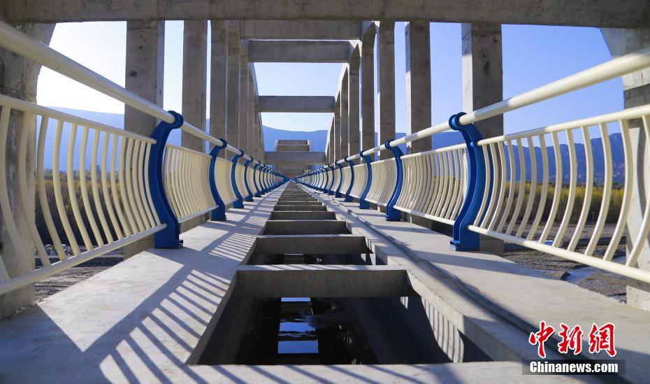 10月16日,青海省海南藏族自治州貴德縣拉西瓦灌溉工程中建設的渡槽內(nèi)部結(jié)構(gòu)。中新社記者 馬銘言 攝