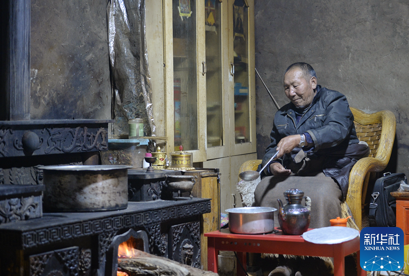 圖為那拉崗村老人洛絨澤仁。新華社記者劉坤 攝