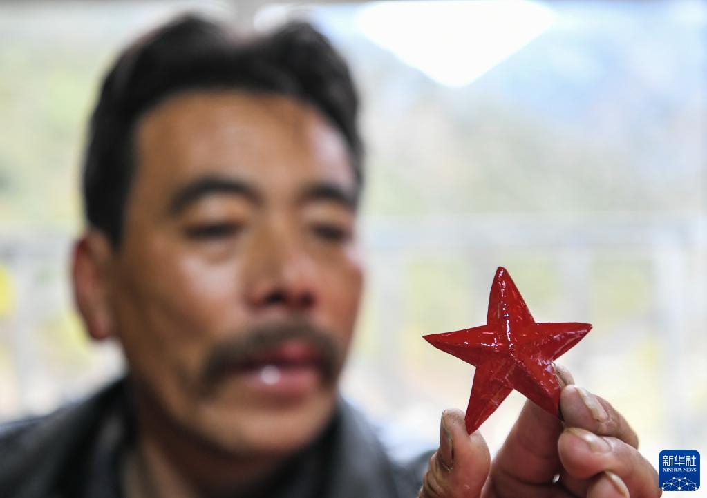 對于打乙西村老鄉(xiāng)而言,紅色的五角星一直閃耀在山谷間。桑安只要一看到紅色的材質,就情不自禁地想要制作五角星。而白瑪扎西現在無論走到哪,都戴著紅色五角星的帽子。
