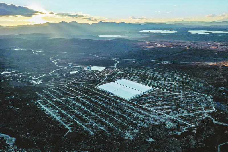 10月11日,從空中鳥(niǎo)瞰稻城海子山高海拔宇宙線(xiàn)觀測(cè)站。