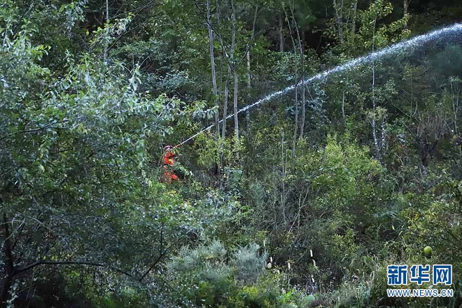 森林消防員在密林中開展水泵滅火演練(攝于11月5日)。新華網(wǎng)發(fā)(云南省森林消防總隊迪慶大隊供圖)
