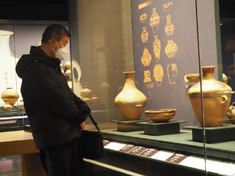 11月24日,青海省博物館試運行,參觀者在青海歷史文物展廳內(nèi)參觀。新華社記者 白瑪央措 攝