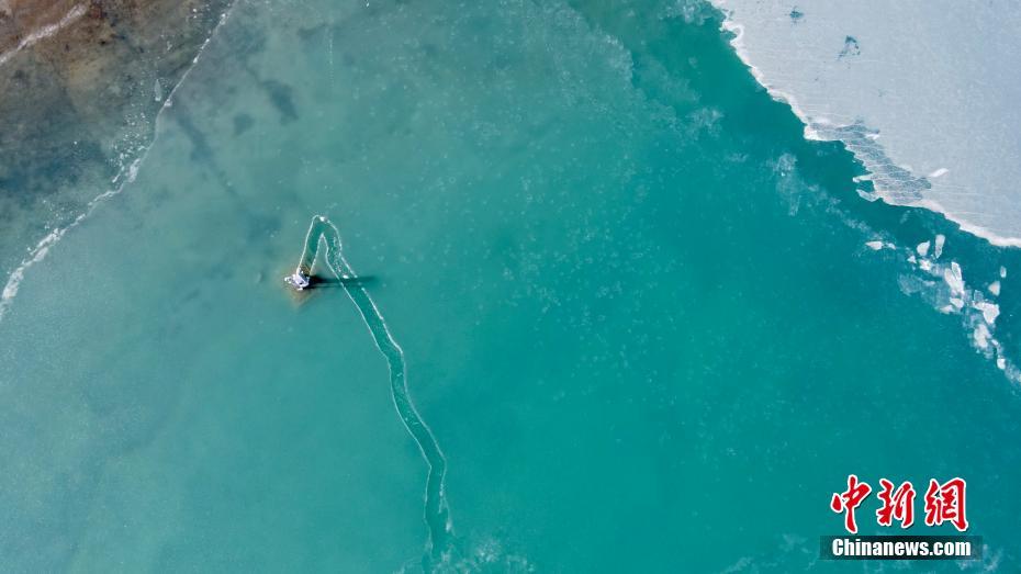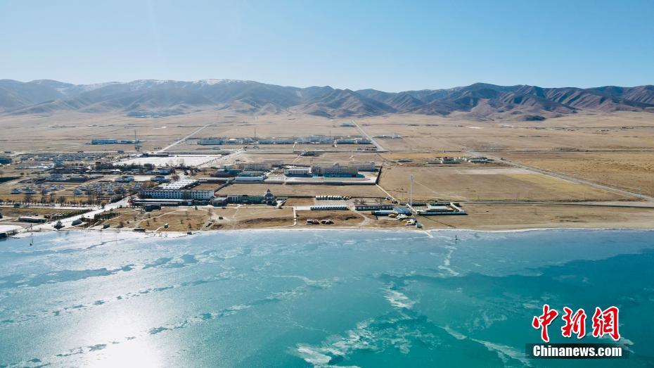 12月21日,航拍冬日青海湖。冬日青海湖周圍的積雪將湛藍(lán)的湖面包裹起來(lái),不斷上凍的湖面猶如一面鏡子。(無(wú)人機(jī)照片) 中新社記者 李江寧 攝