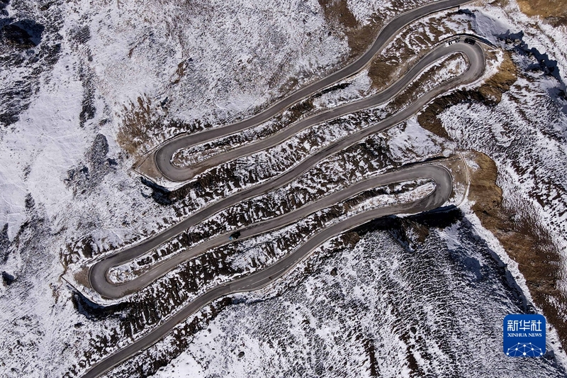 圖為四川甘孜州巴塘縣藏巴拉山的公路(無人機(jī)照片)。 新華社記者 胥冰潔 攝