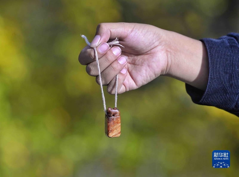 巴塘縣中咱鎮(zhèn)仁德村呷戈家保存的紅軍留下的印章。 新華社記者 劉坤 攝