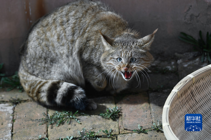 這是2021年5月1日在西寧野生動(dòng)物園拍攝的一只人工救助的荒漠貓。新華社記者 張龍 攝