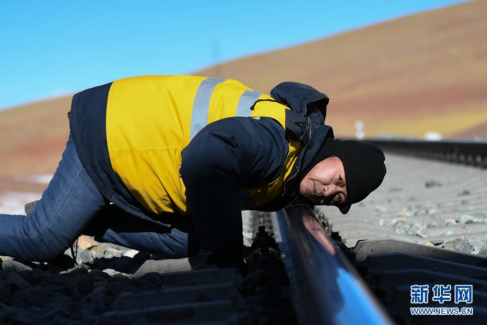 時而在鐵軌上敲敲打打,時而趴在鐵軌上觀察平整度……中國鐵路青藏集團公司格爾木工務(wù)段秀水河線路車間的職工不畏高寒缺氧,頂風(fēng)冒寒堅守在這里。