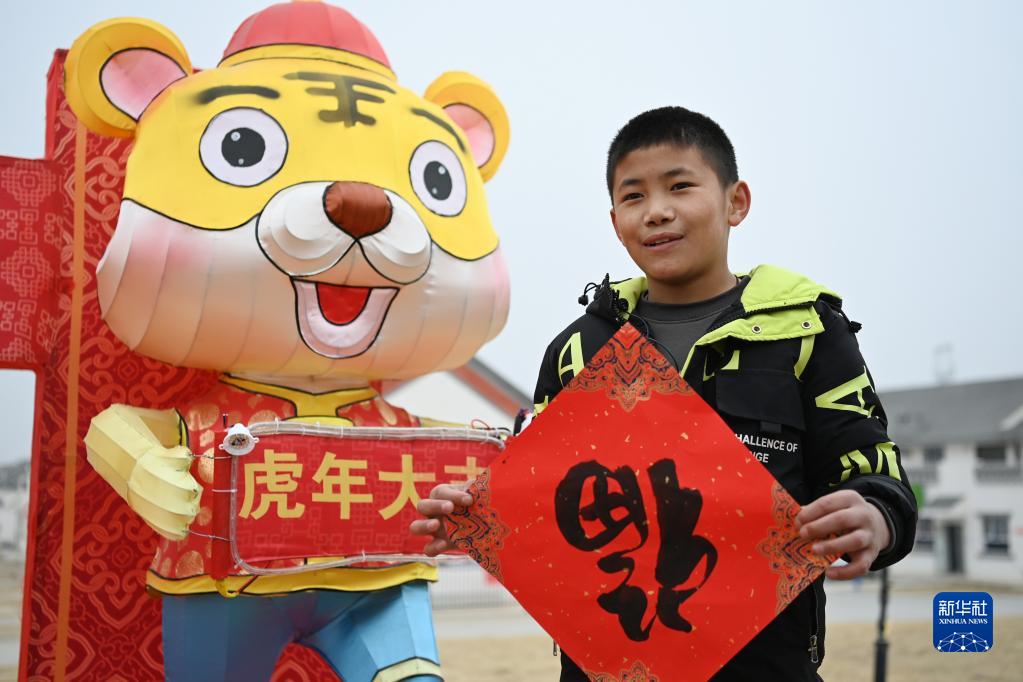 1月25日,在蘭州新區(qū)舟曲避險搬遷安置點,搬遷群眾展示領取的春聯(lián)。新華社記者 范培珅 攝