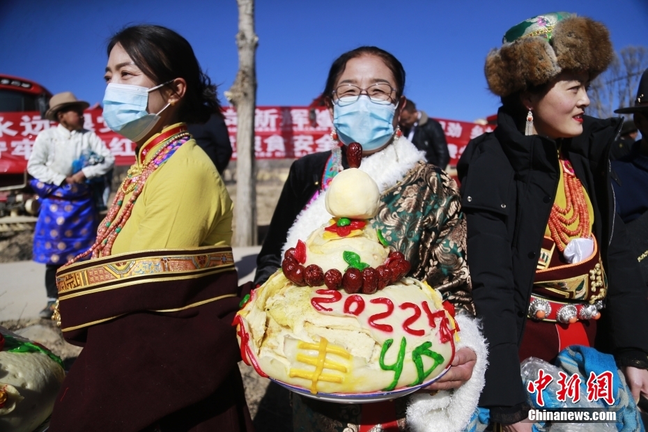 2月24日,青海省海南藏族自治州貴德縣拉西瓦鎮(zhèn)十個(gè)村的藏族民眾身著盛裝,端著寓意風(fēng)調(diào)雨順、五谷豐登的饃饃(藏語(yǔ)稱之為“彤糕”)來(lái)到田間,參加傳統(tǒng)春耕儀式。儀式上,民眾撒種祈福,再現(xiàn)當(dāng)?shù)剞r(nóng)耕從人力耕作到人畜耕作,再到機(jī)械耕作的發(fā)展過(guò)程,并用“二牛抬杠”的傳統(tǒng)方式開(kāi)啟新春第一犁,寄托對(duì)國(guó)泰民安、五谷豐登的美好期望。