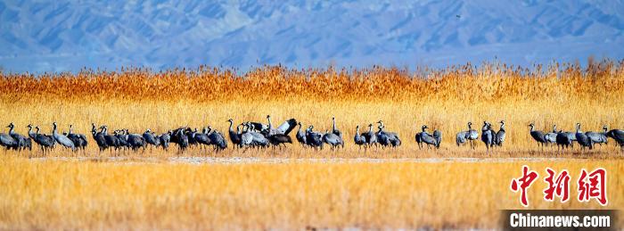 近日,幾百只灰鶴遷徙到可魯克湖,它們或四處覓食,或歇腳休息,呈現(xiàn)出一片生機勃勃的景象。