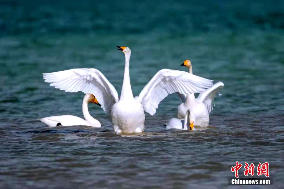 春風(fēng)時節(jié),上百只天鵝在柴達(dá)木盆地可魯克湖翩翩起舞。在碧波蕩漾的湖水中,大天鵝、灰鶴等野生鳥類時而翩翩起舞,時而振翅高飛,時而低空盤旋,為春日的可魯克湖增添了一份美麗與靈動,呈現(xiàn)出一幅五彩繽紛的生態(tài)之美畫卷。
