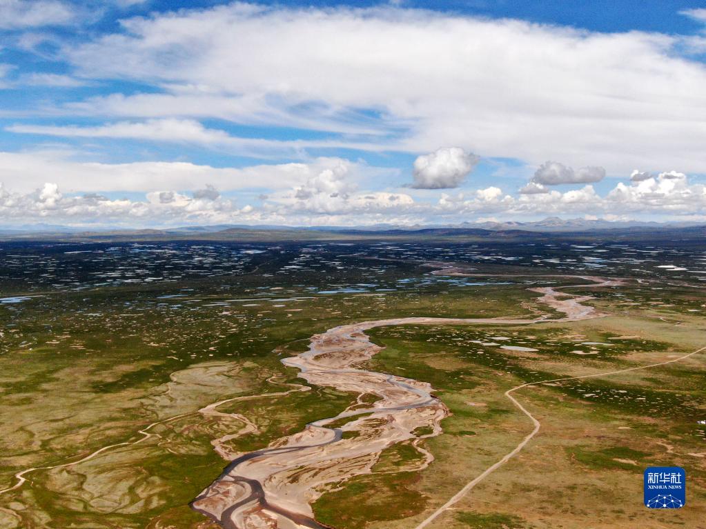 這是2021年7月23日拍攝的長江源地區(qū)的查旦濕地(無人機(jī)照片)。新華社記者 張龍 攝