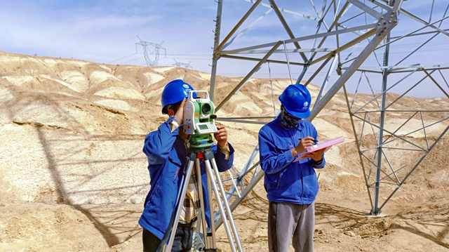 輸電運維人員開展新建桿塔傾斜測量工作。才項東只 攝