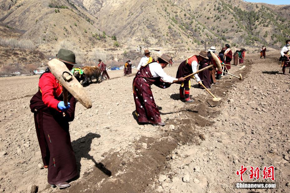 圖為身著節(jié)日盛裝的民眾進(jìn)行耕地。班瑪縣委宣傳部 供圖