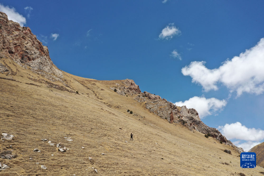 4月22日,生態(tài)管護(hù)員達(dá)杰在巡山(無人機(jī)照片)。新華社記者 韓方方 攝