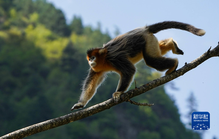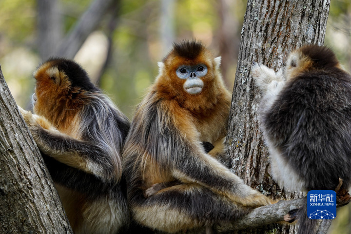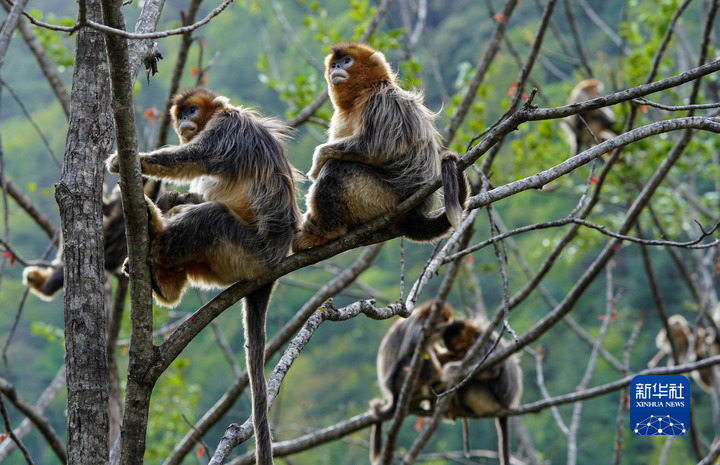 這是4月26日在四川白河國家級自然保護(hù)區(qū)里拍攝的川金絲猴。新華社記者 江宏景 攝