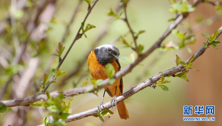 在青海省西寧市湟中區(qū)群加國家森林公園拍攝到的藍(lán)額紅尾鴝。
