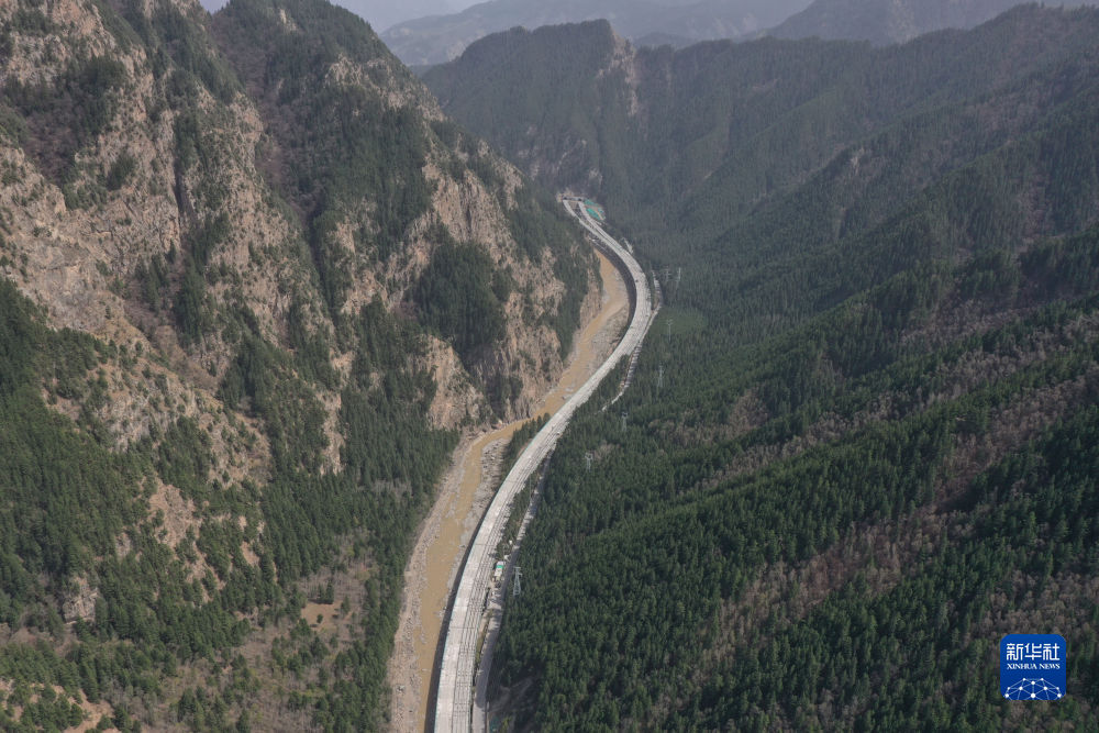 這是4月28日在青海省海東市互助土族自治縣拍攝的加西公路項目沿線風(fēng)景(無人機照片)。新華社記者 陳杰 攝
