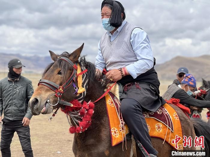 4月27日,才哇(左)在青海玉樹(shù)巴塘草原上與好友聊天。 中新社記者 李江寧 攝