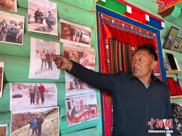 圖為4月29日,云塔向記者展示他與客人的照片。 中新社記者 李江寧 攝