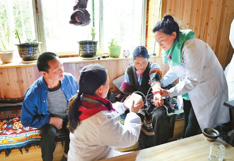 成都市雙流區(qū)對(duì)口支援工作隊(duì)醫(yī)療組的醫(yī)生們到群眾家中送醫(yī)送藥。(圖片由成都市雙流區(qū)對(duì)口支援巴塘縣工作隊(duì)提供)