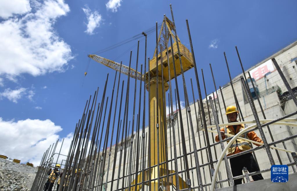 6月22日,施工人員在羊曲水電站施工現(xiàn)場(chǎng)作業(yè)。新華社記者 韓方方 攝