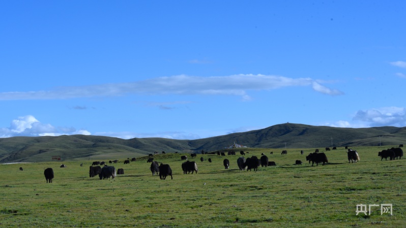 草原上悠閑覓食的牦牛。央廣網(wǎng)記者 樊永濤 攝