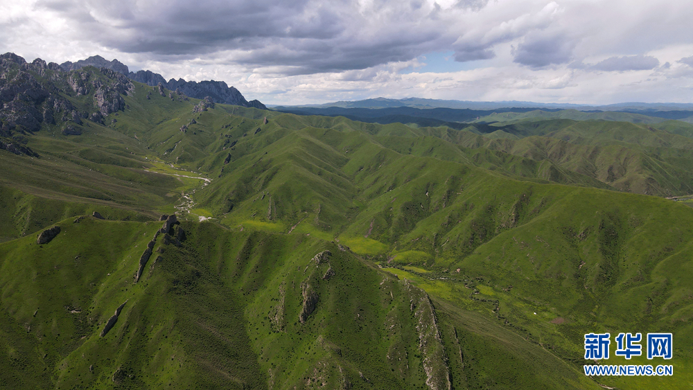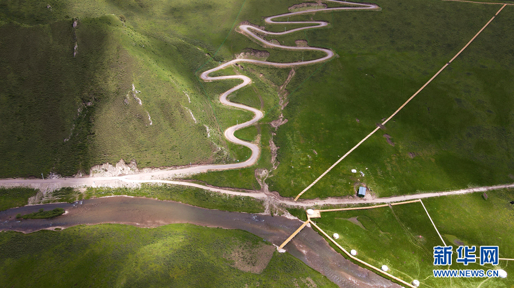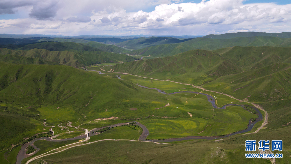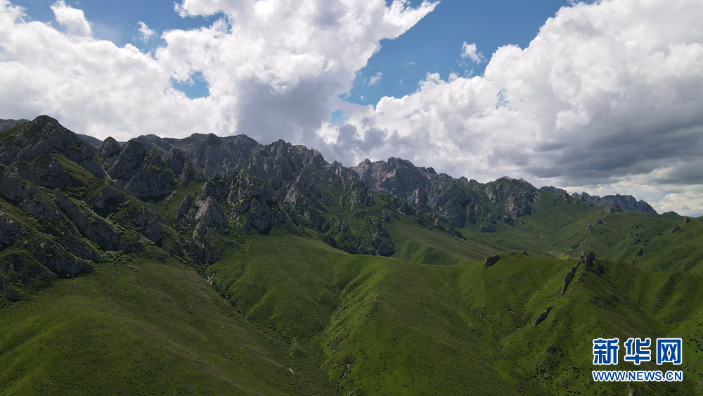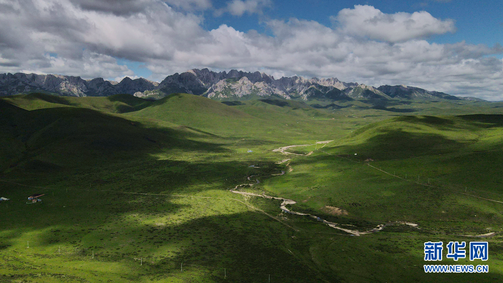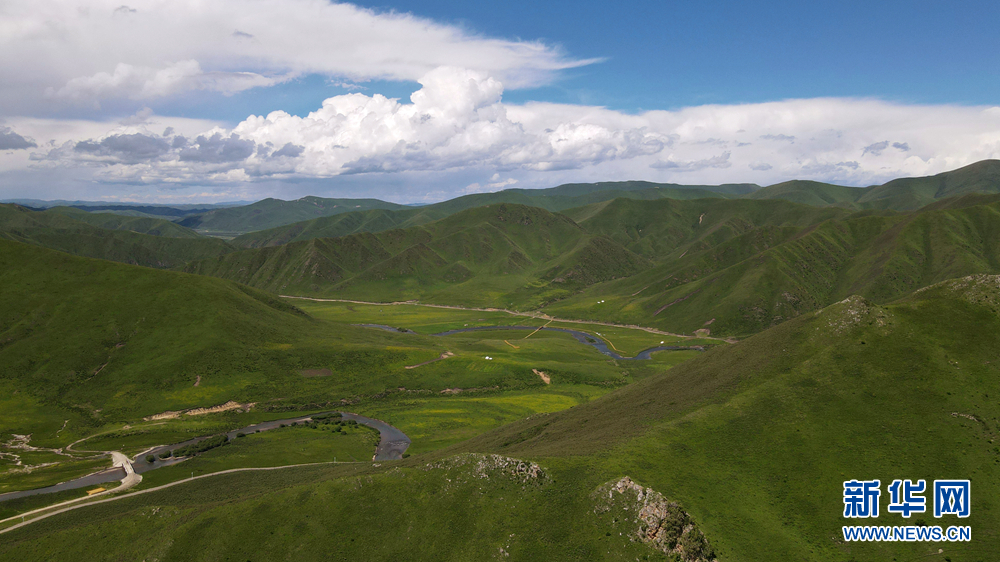 時值盛夏,青海省黃南藏族自治州河南蒙古族自治縣境內(nèi)的青海洮河源濕地公園,奇峰聳立、水草豐美。藍天白云之下,高山與草原相映,風(fēng)光旖旎、如詩如畫。