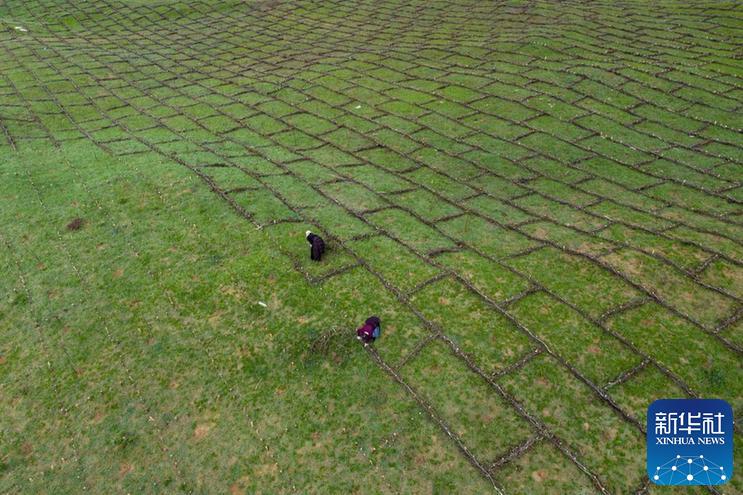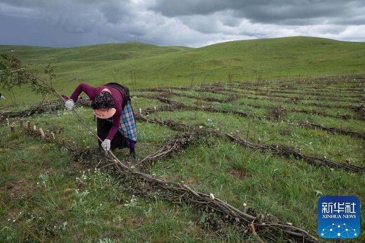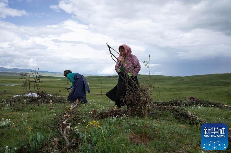 從五月底開始,四川省若爾蓋縣麥溪鄉(xiāng)黑河村村民在當(dāng)?shù)卣M織下,抓住雨水季節(jié)的有利時機(jī),在草場開展防沙治沙工作。
