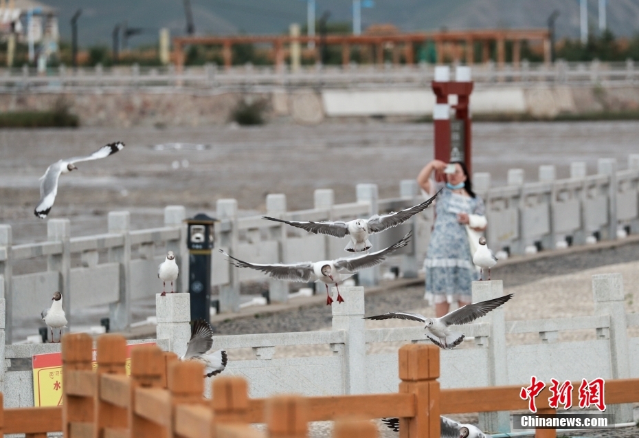 8月11日,青海省海北藏族自治州剛察縣,沙柳河國(guó)家濕地公園內(nèi)的大量水鳥吸引游客。中新社記者 賈天勇 攝