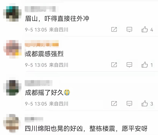 據(jù)微博評(píng)論顯示,周邊地區(qū)網(wǎng)友稱震感強(qiáng)烈。