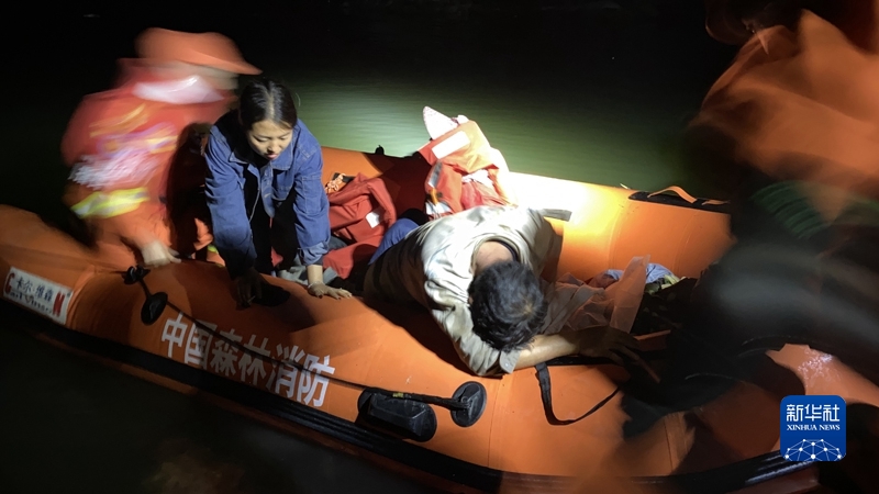 9月5日,在瀘定縣德妥鎮(zhèn)新華村,甘孜州森林消防支隊救援人員通過橡皮艇轉(zhuǎn)移受傷群眾。魏紅攝