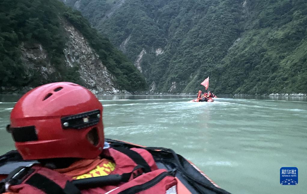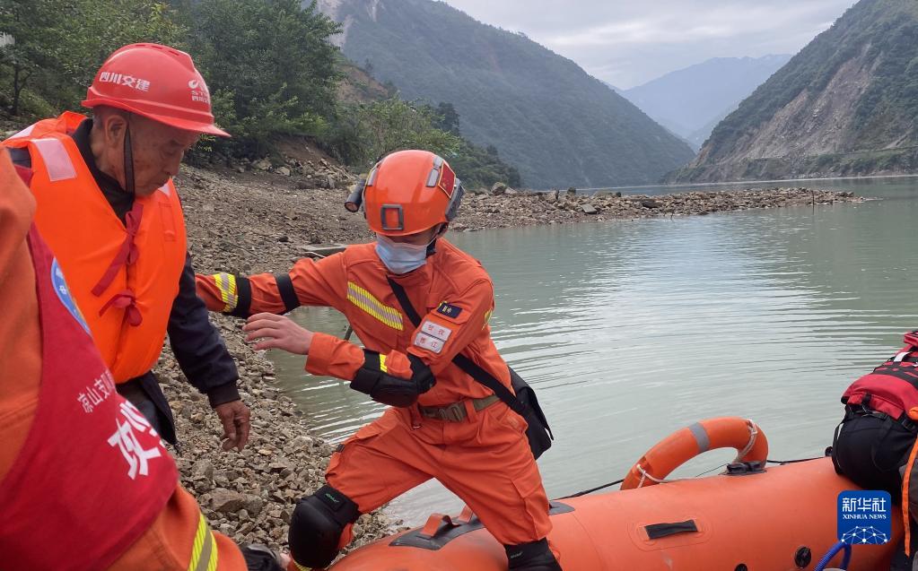 9月6日,四川森林消防總隊(duì)甘孜支隊(duì)消防員乘橡皮艇進(jìn)入瀘定縣得妥鎮(zhèn)紫雅場(chǎng)村。新華社 魏紅 攝