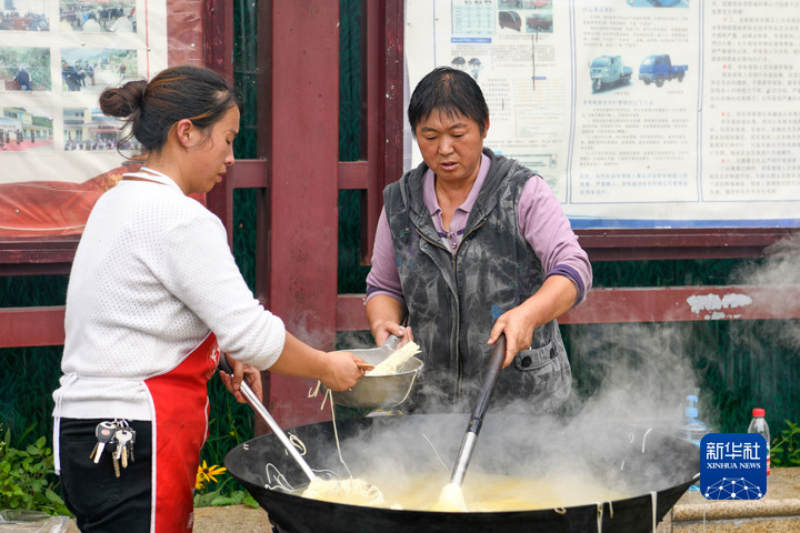 9月6日,在位于四川省雅安市石棉縣王崗坪鄉(xiāng)挖角村村委會的安置點(diǎn),村民在安置點(diǎn)內(nèi)架起鍋灶,生火做飯,為安置點(diǎn)里的鄰里鄉(xiāng)親準(zhǔn)備餐食。