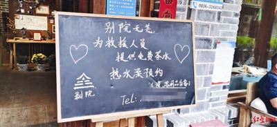“古道別院”工作人員唐莎告訴記者,地震發(fā)生后,民宿就把客房提供給了救援人員住宿,也提供免費茶水、咖啡,同時給救援人員和當地居民提供洗澡的地方。
