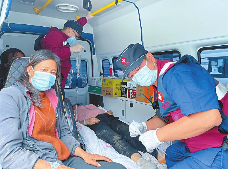 9月6日上午11時(shí),搭載著十余名地震傷員的直升機(jī)飛抵瀘定縣城,農(nóng)工黨黨員、四川省骨科醫(yī)院救援小分隊(duì)成員向繼林早已等候在這里,初步處理和分診后,立即將傷員送往瀘定縣人民醫(yī)院。在震區(qū)救援點(diǎn),民盟盟員、骨傷科專家王振龍帶領(lǐng)著西南醫(yī)科大學(xué)附屬中醫(yī)醫(yī)院救援隊(duì)晝夜不停,全力救治傷員。