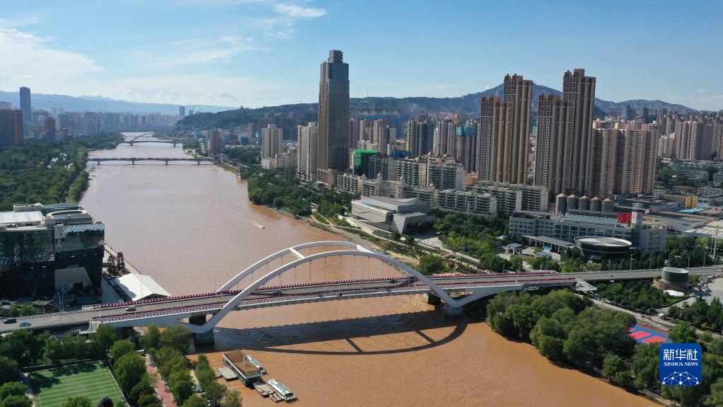 這是在甘肅省蘭州市拍攝的黃河兩岸城市風(fēng)光(9月5日攝,無人機照片)。新華社記者 陳斌 攝