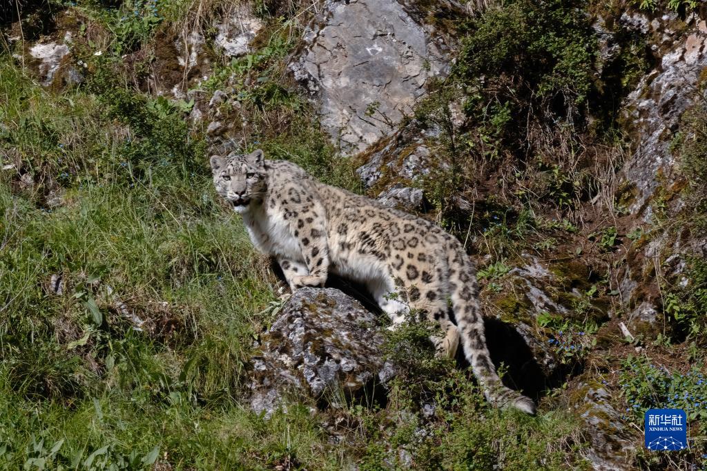 這是在青海省玉樹藏族自治州雜多縣境內的昂賽大峽谷拍攝的雪豹(8月6日攝)。新華社發(fā)(姚牧陽 攝)
